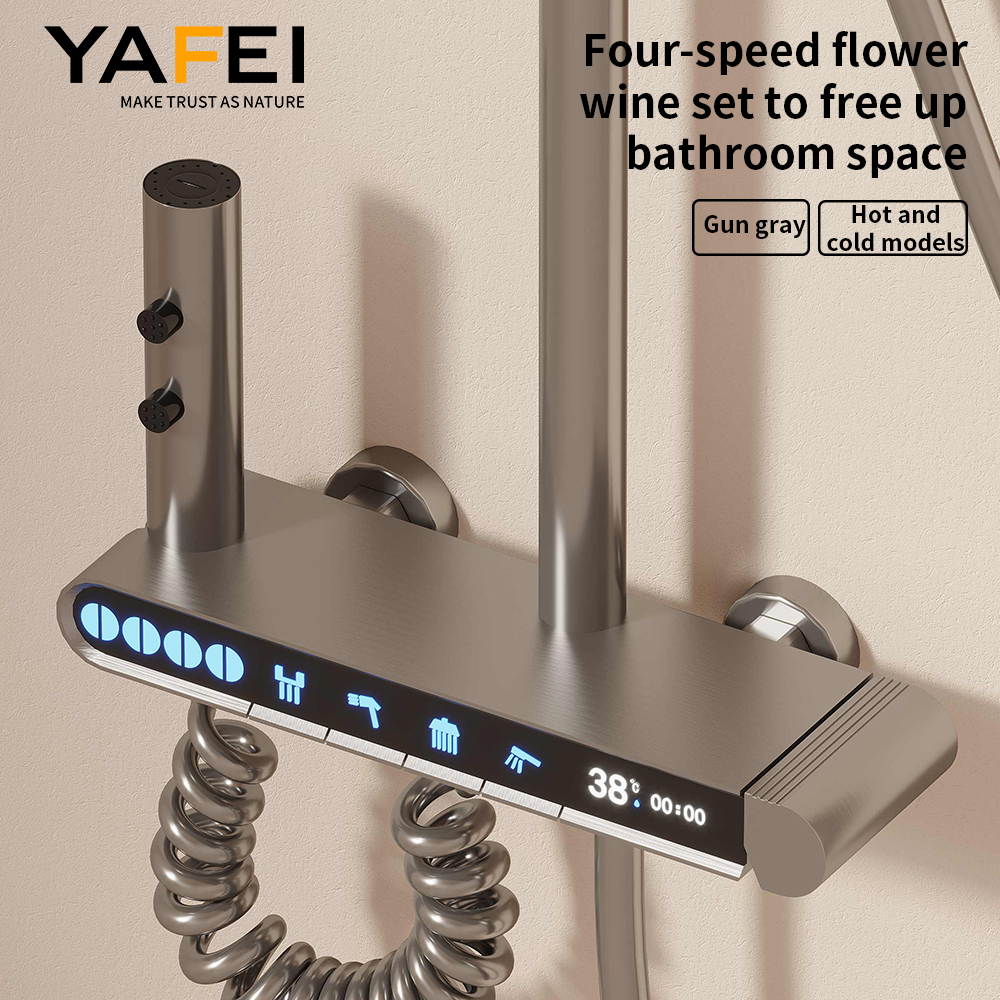 Introducing the YF230530045 Rectangular Rain Shower Head Set — a game-changer in bathroom luxury and functionality. This all-in-one thermostatic shower system combines a 12-inch rectangular fixed shower head, a 3-mode flower shower head, a handheld bidet sprayer, and a concealed water faucet to meet every shower need. Equipped with innovative air injection technology and a battery-free LED temperature display, it delivers a spa-like experience while saving water and ensuring safety. Crafted from high-grade materials like ABS, precision copper, and 304 stainless steel pipes, this polished chrome shower set blends durability, style, and practicality, making it a perfect upgrade for any modern bathroom.