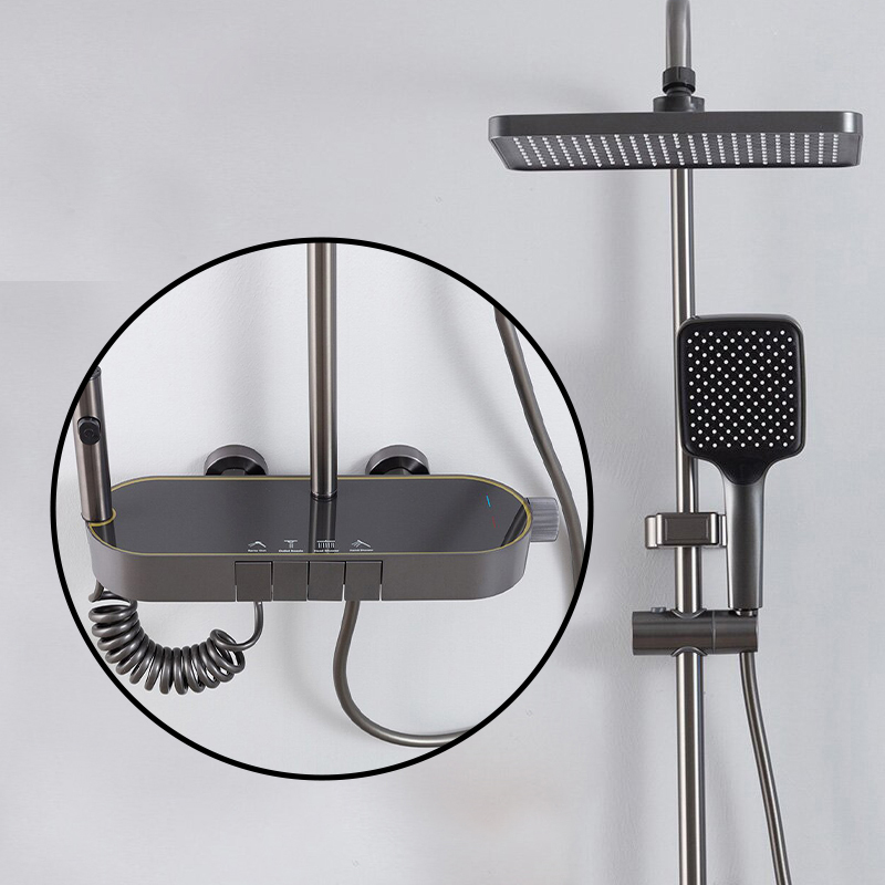 This wall mounted thermostatic shower system features a battery-free smart digital display that shows real-time water temperature and shower duration, eliminating temperature guesswork for end users. The thermostatic core prevents sudden scalding caused by water pressure fluctuations, a critical safety feature for hospitality and multi-residential projects, significantly reducing end-user complaints and maintenance requests.