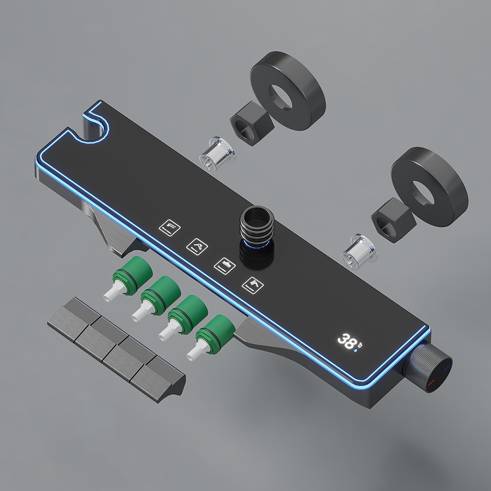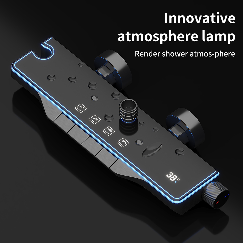 The LED digital display automatically shows real-time water temperature and usage time, powered by hydropower (no batteries needed). An integrated ambient light strip enhances the shower atmosphere, casting a soft glow that turns routine bathing into a luxurious experience.