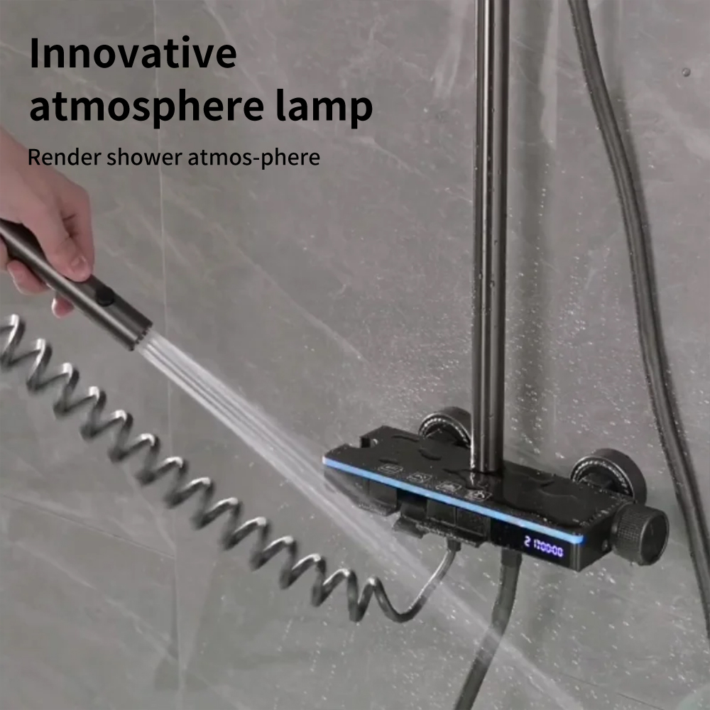 | Included Components | Thermostatic Shower System Digital Display Faucet Set Wall Mount Piano Keys Rain Combo with Handheld, 12" Head, Shoulder Spray, 2 in 1 Bidet Tub Spout (Gray) includes Handheld Hose, Spout, Spray. |