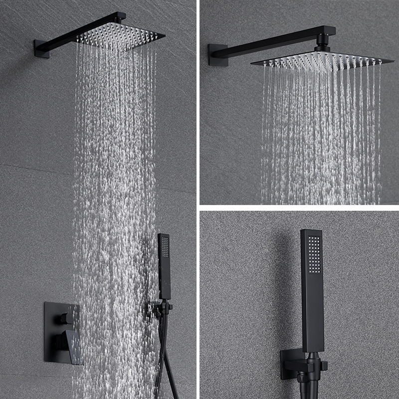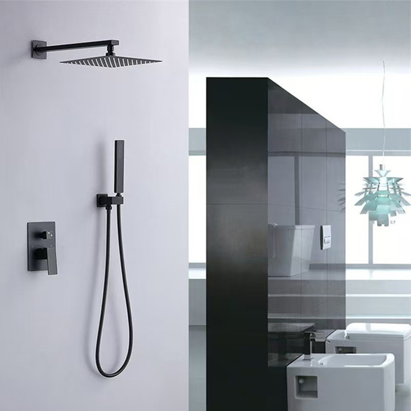 【Include】:10 inch Square rain shower head, handheld shower spray,59 inch shower hose,13.7 inch shower arm,handheld holder, pressure balance valve,panel,handle,cover and install hardware include.