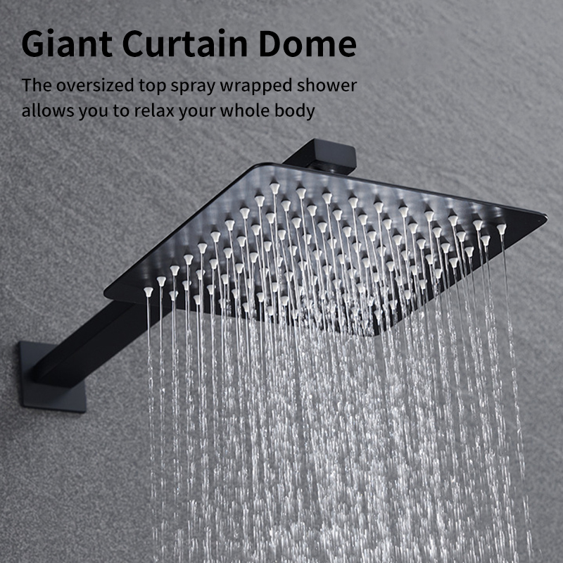 【Function】:This rain shower system with adoption of innovative air injection technology, the large 10 inch raining shower head mixes water with air to increase the water pressure to 100%, and simulates the natural raining to provide you with natural feeling of water experience.