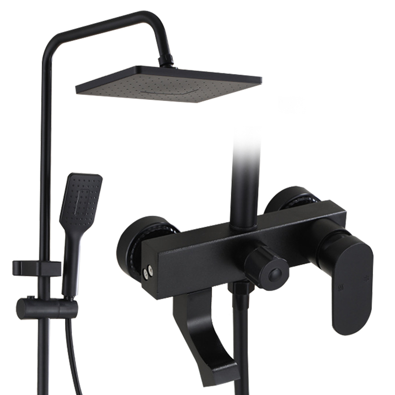 【Shower Set Include】 Rainfall shower head and 16" wall mount shower arm, handshower head and 59“ shower hose, hand shower water connection, and brass shower valve with 2-way diverter
