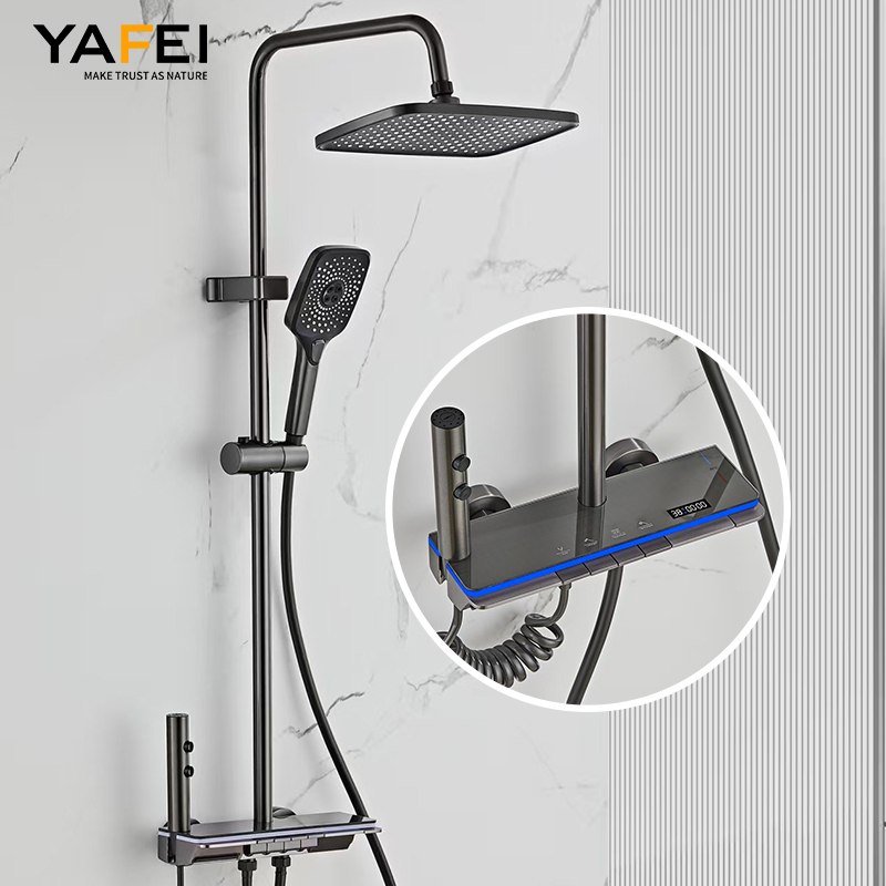 THERMOSTATIC SHOWER SYSTEM - Say goodbye to sudden bursts of hot or cold water and the frustrating task of finding the optimal temperature. This shower faucet set features water temperature display, effectively preventing scalding risks for children and the elderly. A thoughtful gift for family or friends renovating their homes!