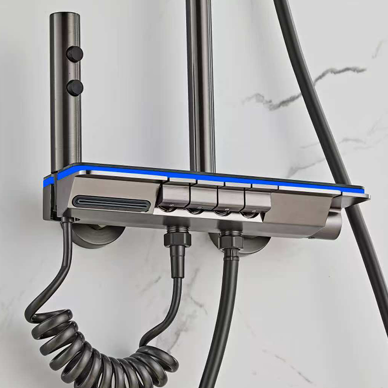 PIANO KEY SWITCH - Includes 4 spouts:Top spray, Handheld, Cleanse Spout, and Bathtub Faucet—each with its own clearly marked switch . The sleek piano-style control buttons let you effortlessly adjust functions for a personalized shower experience. Enjoy a refreshing, comfortable, and safe shower tailored to your preferences.