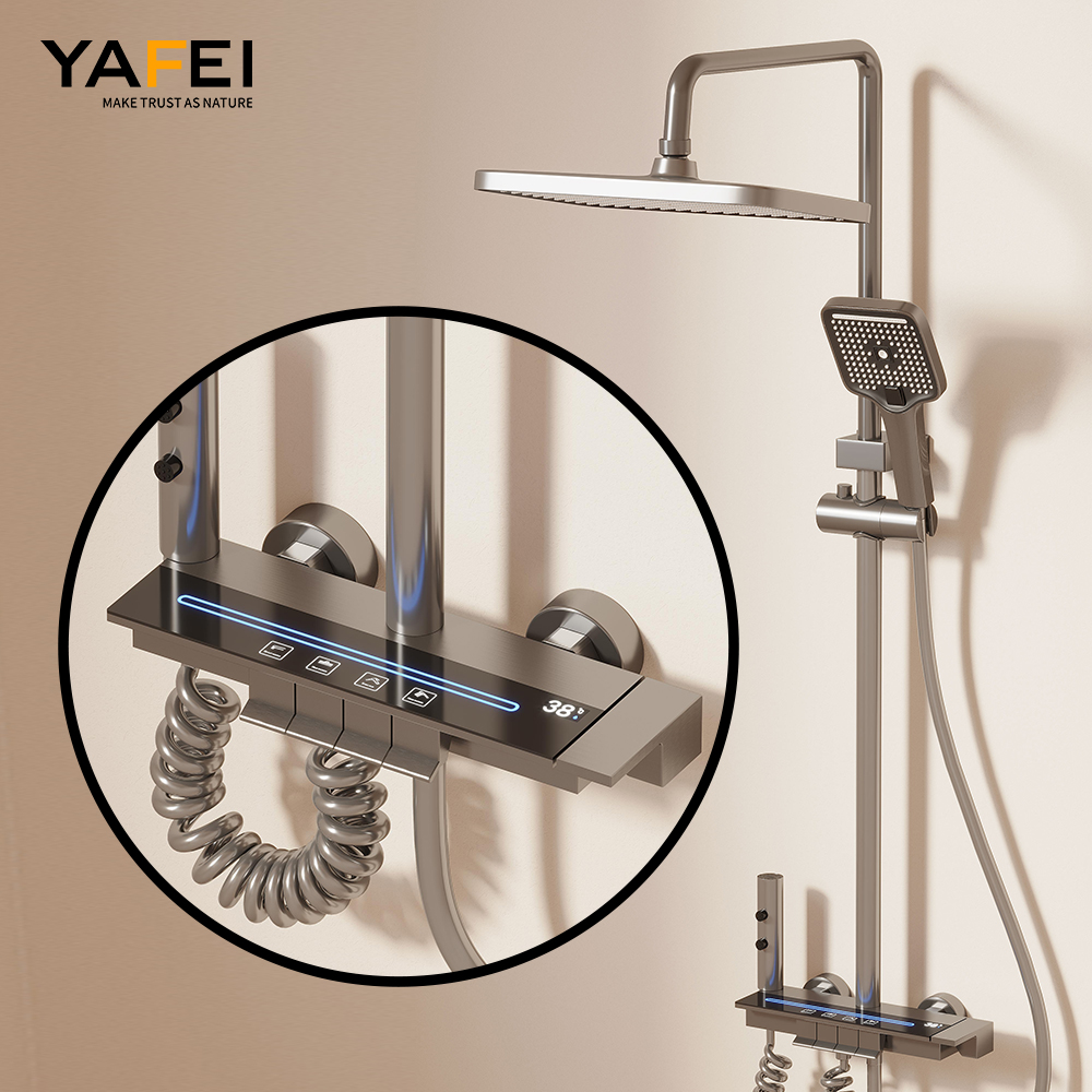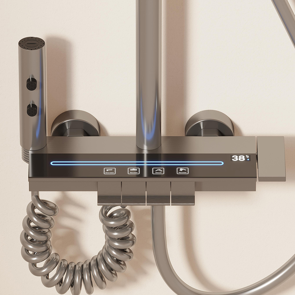 | Included Components | Thermostatic Shower System Digital Display Faucet Set Wall Mount Piano Keys Rain Combo with Handheld, 12" Head, Shoulder Spray, 2 in 1 Bidet Tub Spout (Gray) includes Handheld Hose, Spout, Spray. |