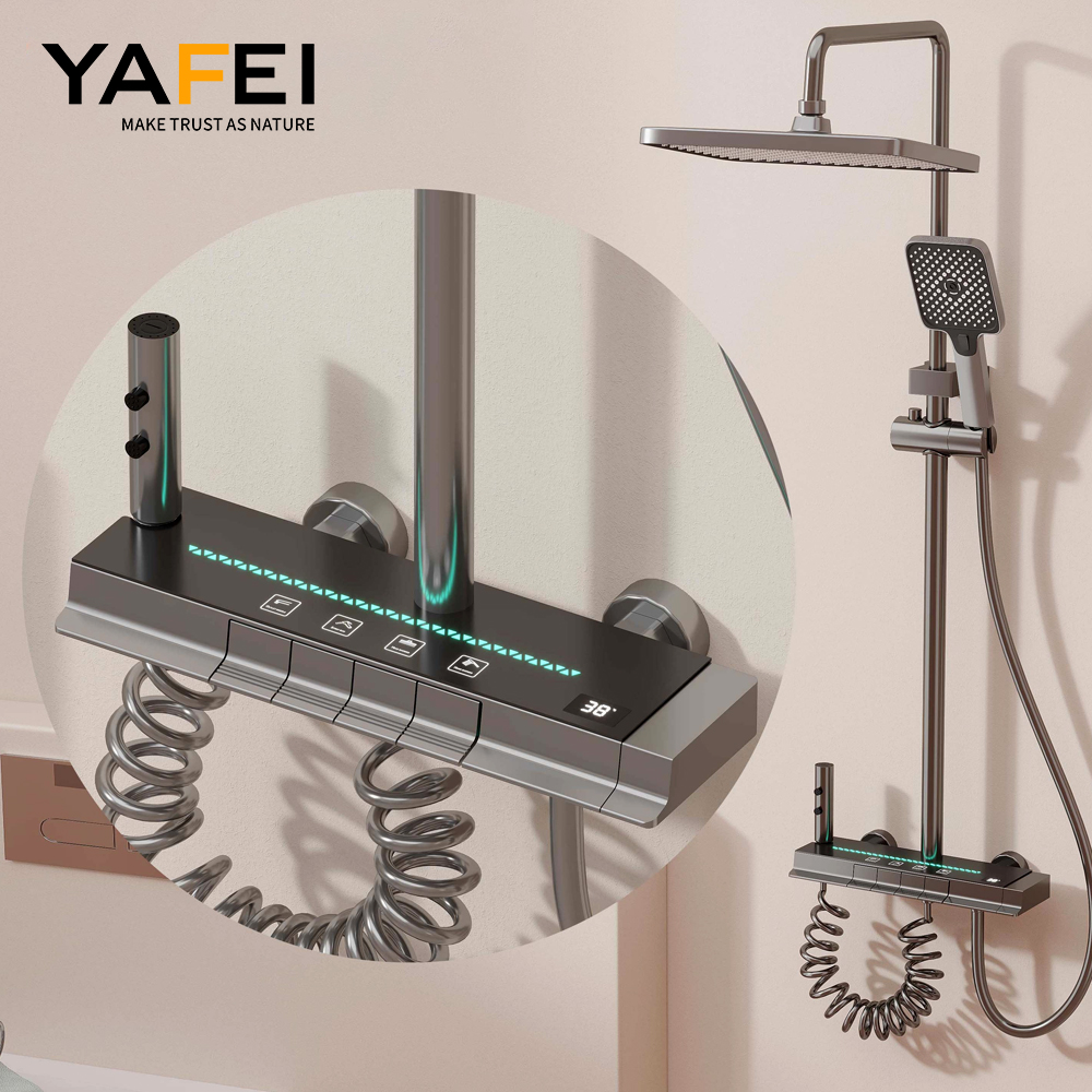 | Included Components | Thermostatic Shower System Digital Display Faucet Set Wall Mount Piano Keys Rain Combo with Handheld, 12" Head, Shoulder Spray, 2 in 1 Bidet Tub Spout (Gray) includes Handheld Hose, Spout, Spray. |