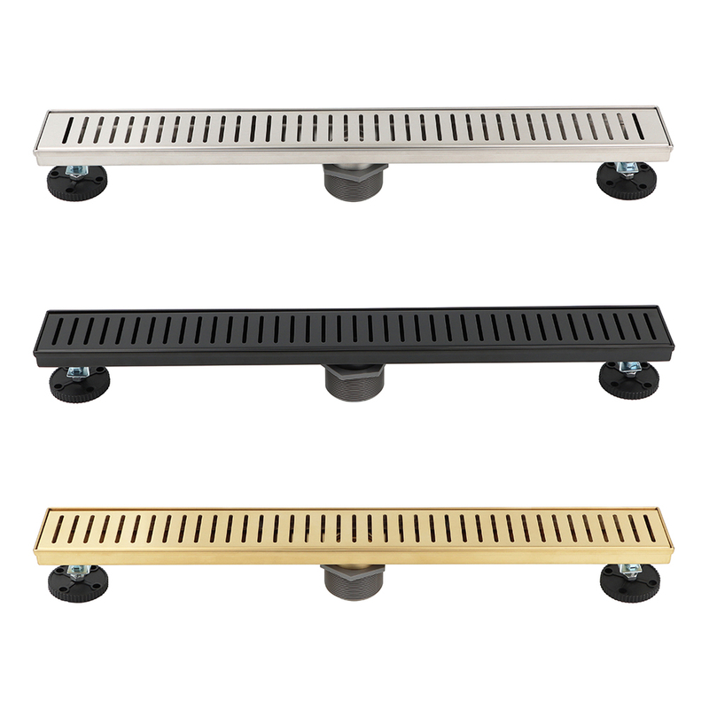 Adjustable feet support the channel body during installation, can solve the installation problem effectively caused by the unevenness of the ground. The square shower drain is made of high quality 304 stainless steel.