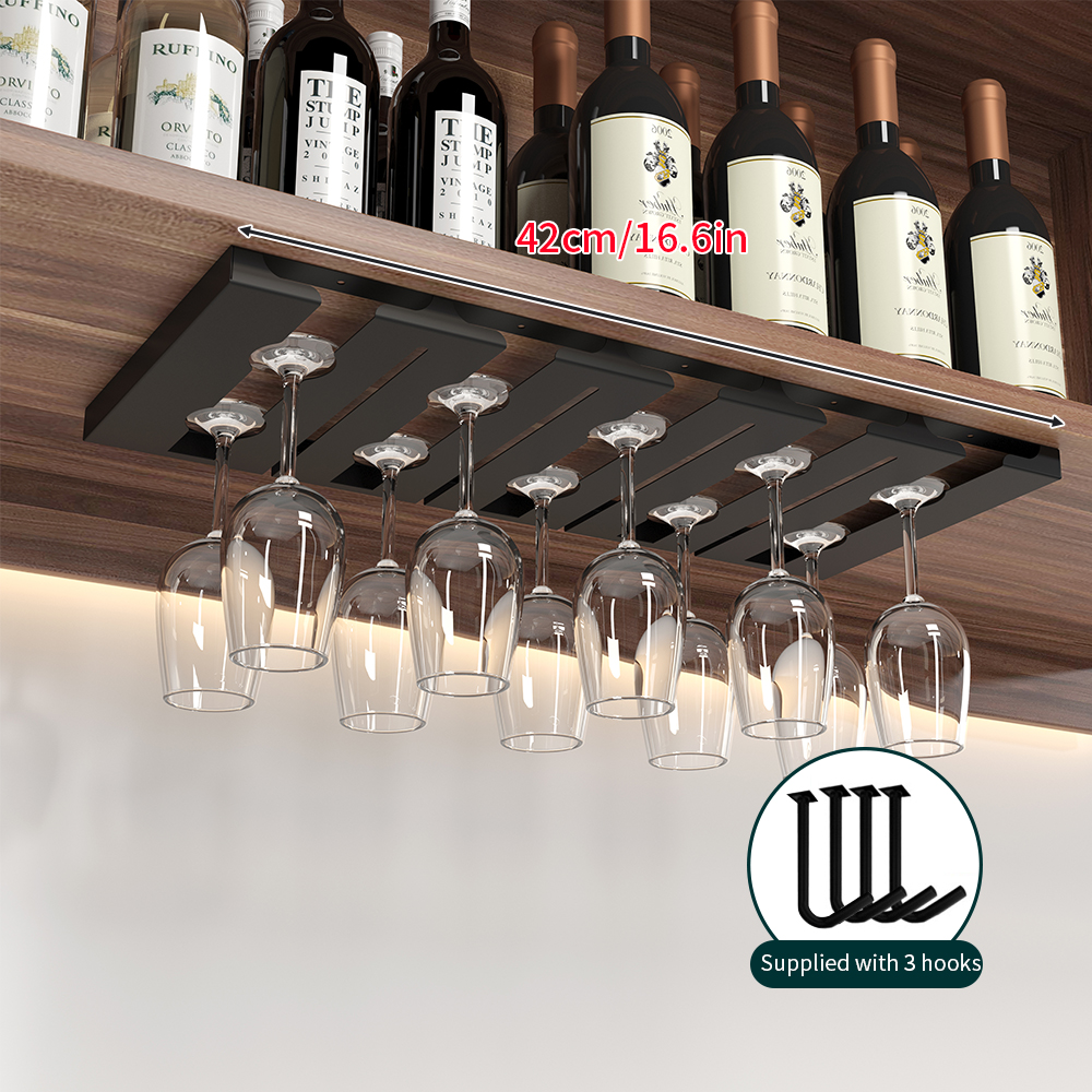 [SIZE] - Our wine glass holder is 16.5x9.05x0.79inch(42x23x2cm).It can be used under cabinet, counter and other places.
