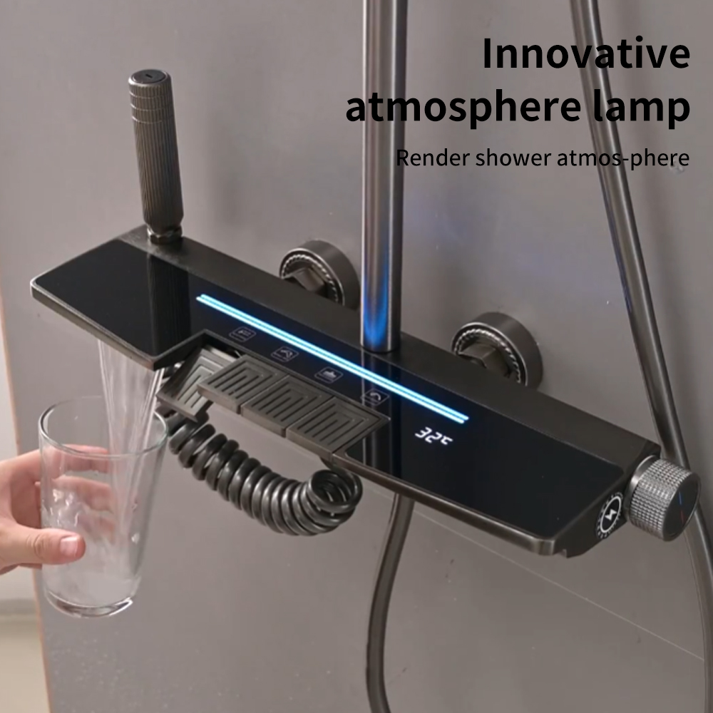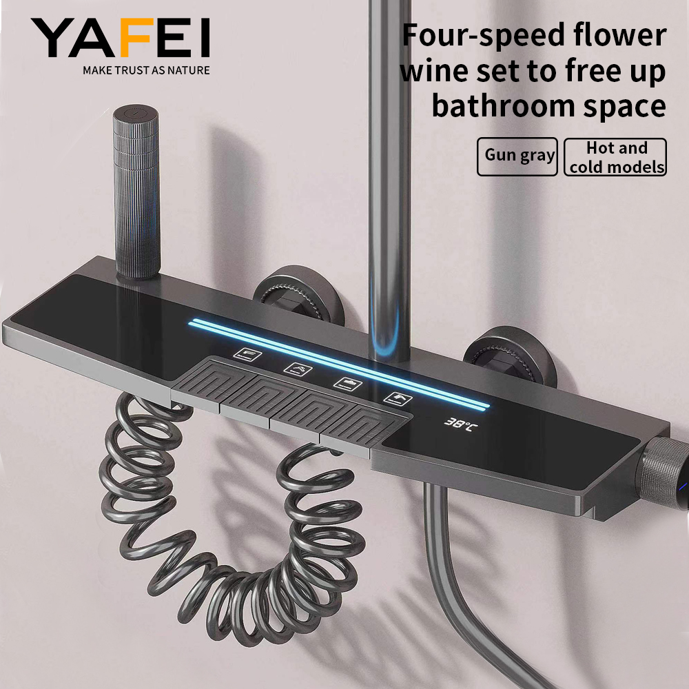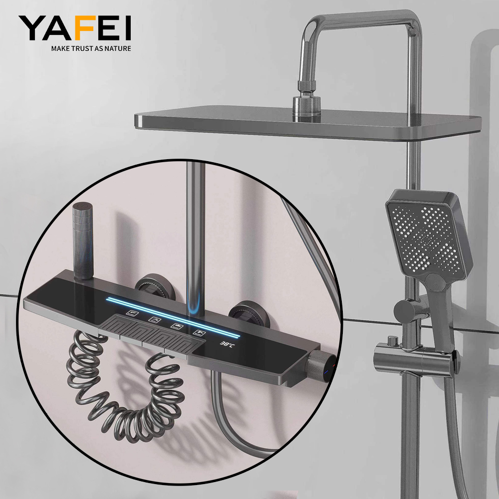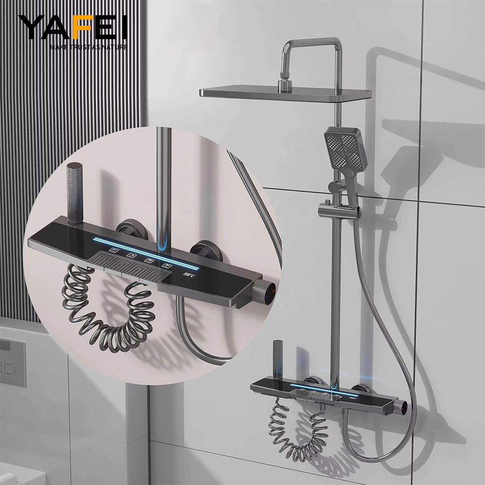 YF230530042 қара термостатикалық душ жүйесі - ваннаға түсу тәжірибеңізді қайта анықтауға арналған жоғары өнімді ваннаға арналған қондырғы. Инновациялық технологияны пайдаланушыға бағытталған дизайнмен үйлестіре отырып, бұл жарық диодты сарқырама душ жинағы 4 функциялы бүріккіш жүйені, дәл термостатикалық басқаруды және гидроэнергетикамен жұмыс істейтін сандық дисплейді біріктіреді — барлығы жуынатын бөлменің заманауи декорын толықтыратын жылтыр қара түсте. Қорғасынсыз, ұзаққа созылатын материалдардан жасалған ол спаға ұқсас жайлылықты қамтамасыз ете отырып, отбасылар үшін қауіпсіздікке басымдық береді. Сіз босаңсытатын жаңбыр душын, мақсатты массажды немесе ваннаны жылдам толтыруды қалайсыз ба, бұл термостатикалық жаңбыр душына арналған шүмек жинағы стильді немесе тиімділікті төмендетпестен күнделікті шомылу қажеттіліктеріңізді қанағаттандырады.