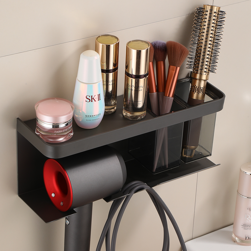 МӘЛІМЕТКЕ НАЗАР АУДАРЫҢЫЗ : Бұл шаш кептіргішті ұйымдастырушы шаш кептіргішті сызаттар мен сырғып кетуден сақтайтын қорғаныс силикон төсемдерімен жабдықталған. Сөре платформасы қауіпсіздік пен тұрақтылық үшін қалыңдатылған және дөңгеленген бұрыштардан жасалған.