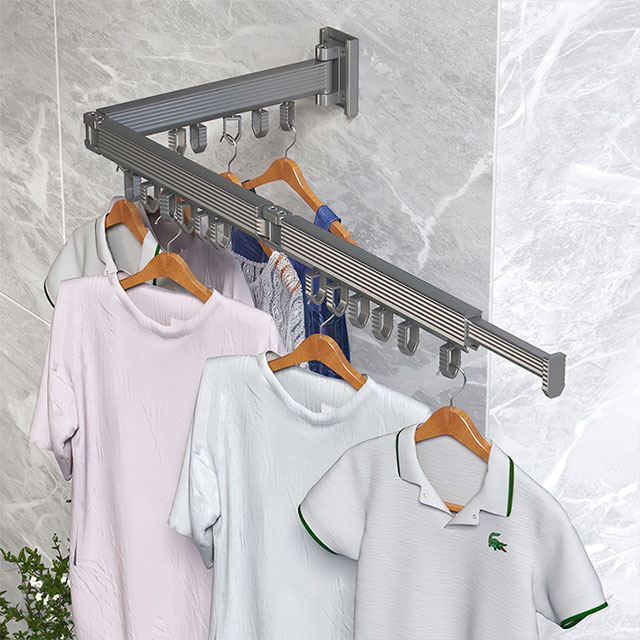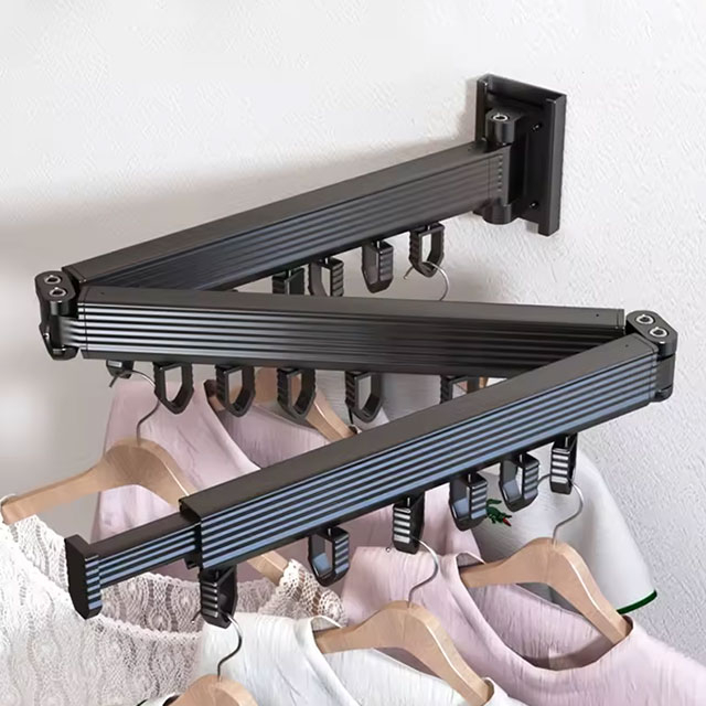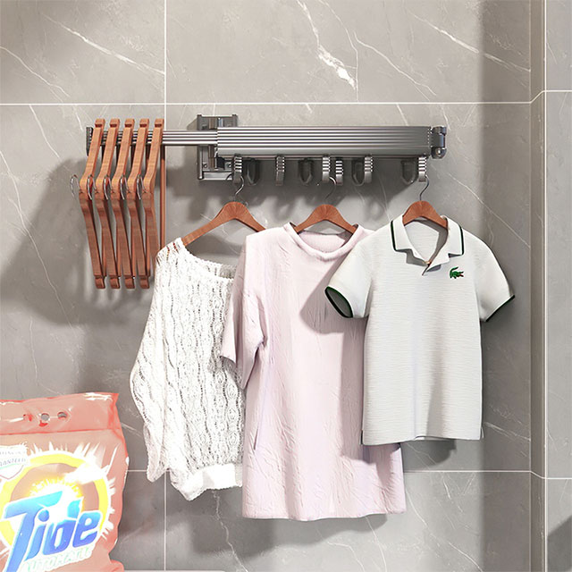 1.【Ғарышты үнемдеу】Үш бүктелген дизайн бұл киім сөресіне кеңістікті үнемдейтін сипаттамалар береді. Киімді кептірмей жатқанда, сіз қабырғаға қарама-қарсы кішірейіп, орын алмасаңыз болады.