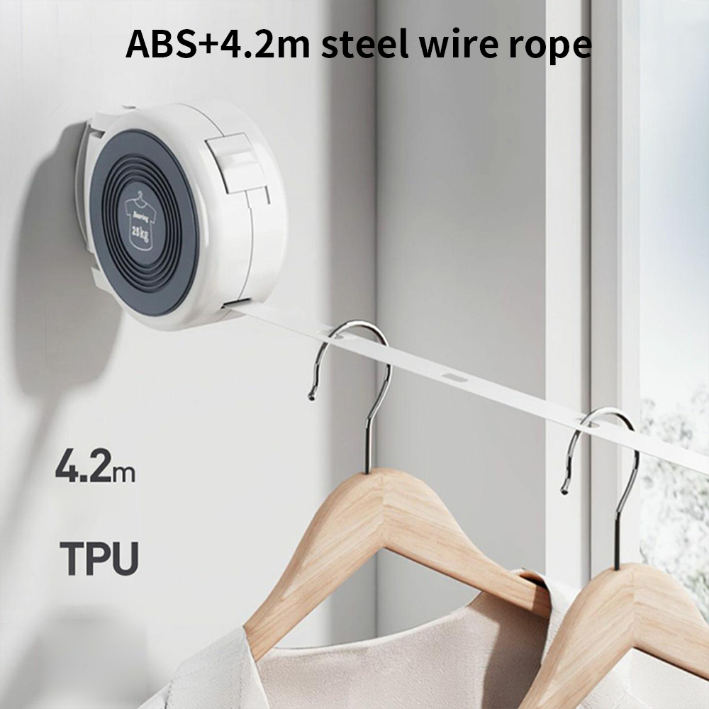 Ауыр жүк сыйымдылығы : керемет жүк көтергіштігі 44 фунт, 13,78 фут максимум ұзартады, 34 жел өткізбейтін және тайғақ емес кептіру саңылаулары дизайнымен киіміңізді орнында ұстау үшін бұл жабық сыртқы киім жіптері ұзақ уақытқа созылған.